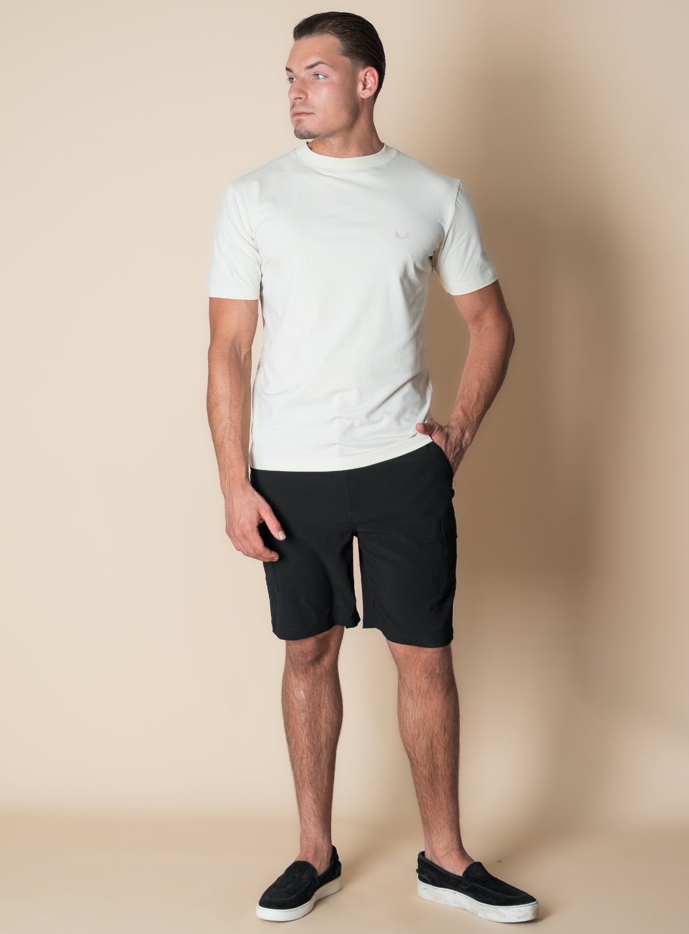 The Bomba shorts are made for warm days where comfort and style go hand in hand. The fabric is smooth, lightly stretchy, and feels comfortable with every move. A subtle wave-like texture gives them a breezy feel and a distinct look. The regular fit wears relaxed on the thigh, with an elasticated back waistband for extra flexibility. Thanks to the cargo pockets, style and function come together effortlessly. Clean, comfortable and just right for all your summer plans.
