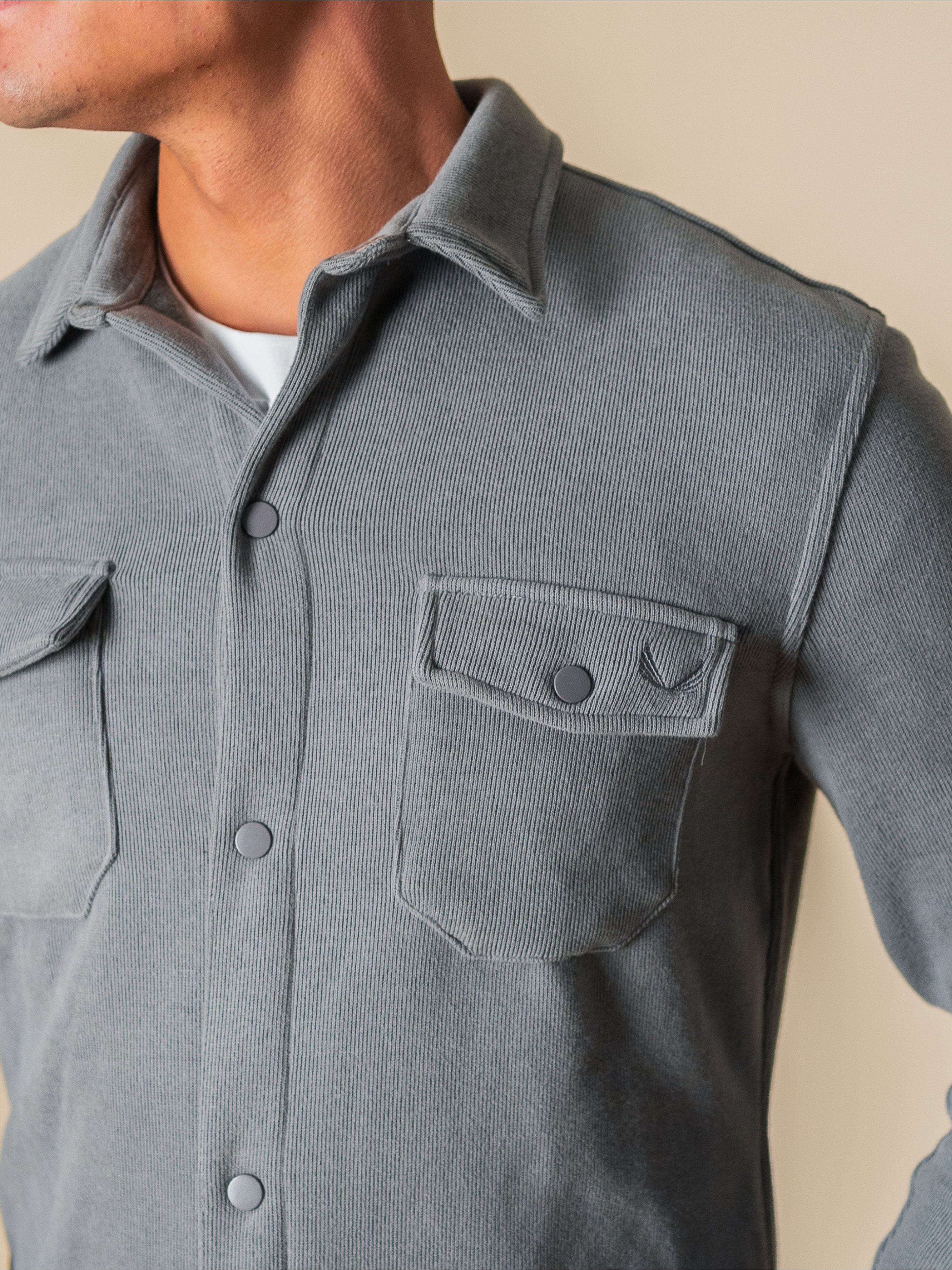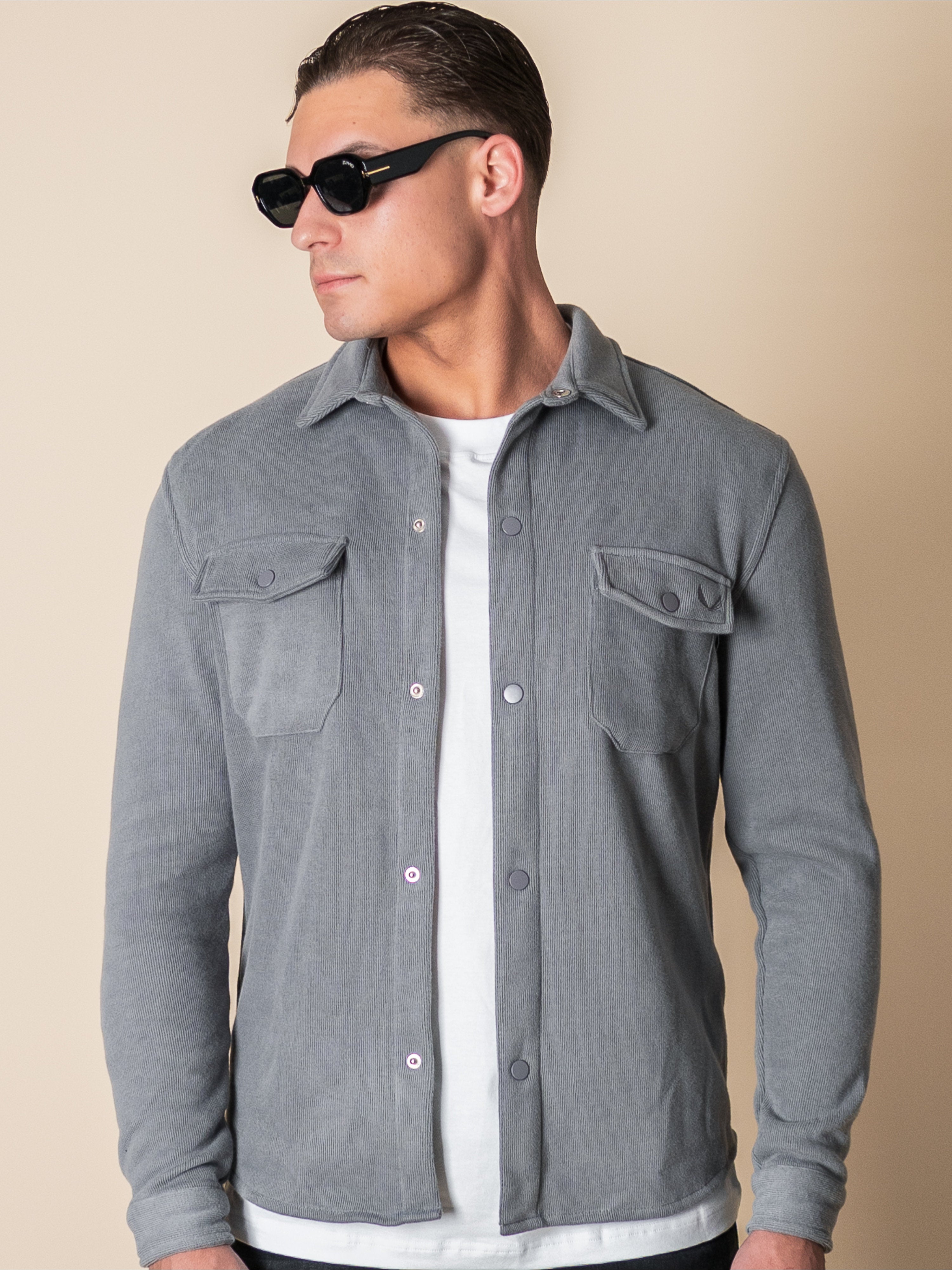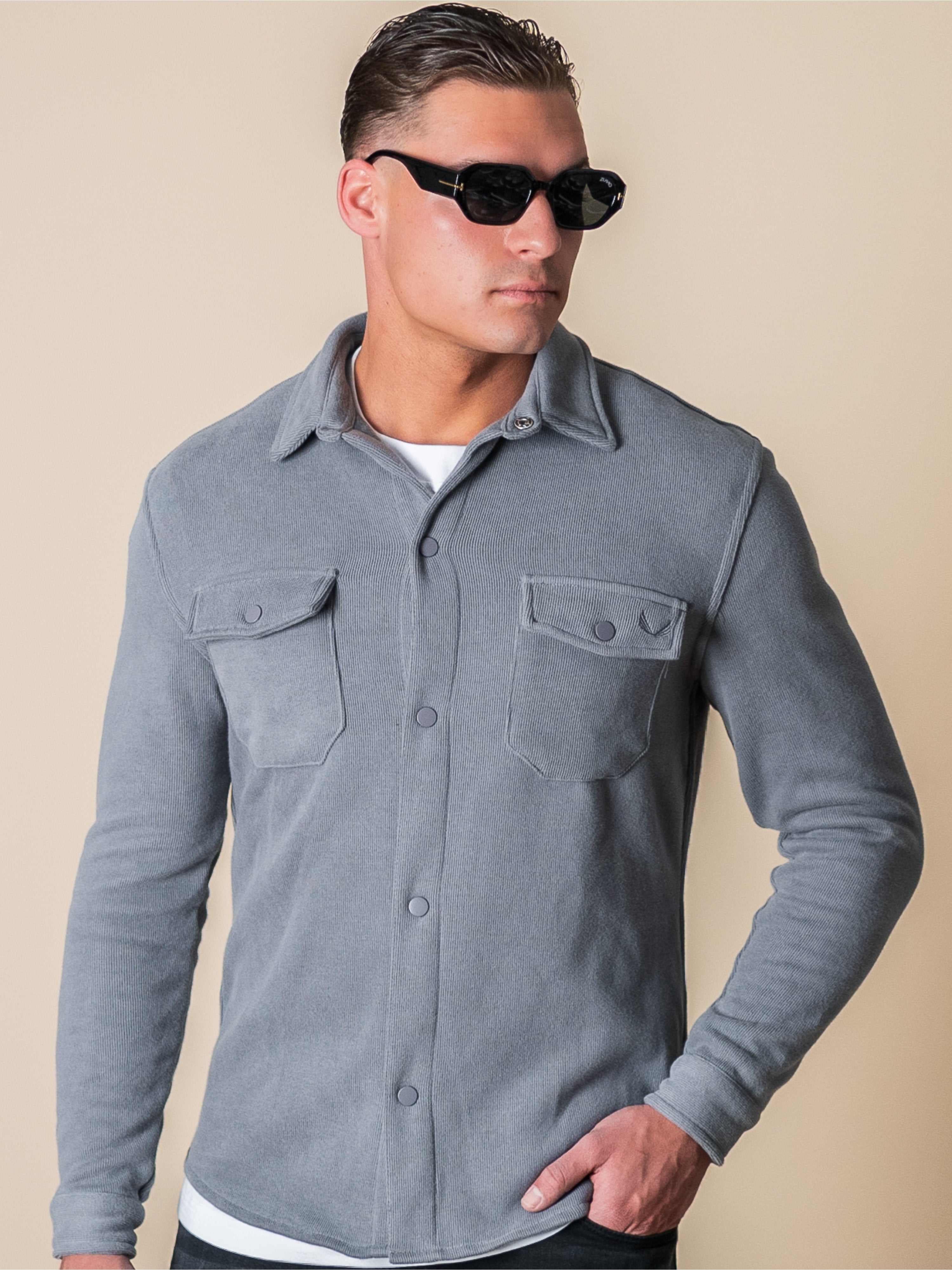 The Larro overshirt is designed to bring structure and warmth into one clean layer. Cut in a regular fit, it combines a sharp outer look with a fleece-lined interior for consistent comfort in colder days. With flap chest pockets and a button-up front, it’s a versatile piece that moves easily between indoor layering and outdoor wear. Minimal in style, strong in presence, and built to keep you ready.