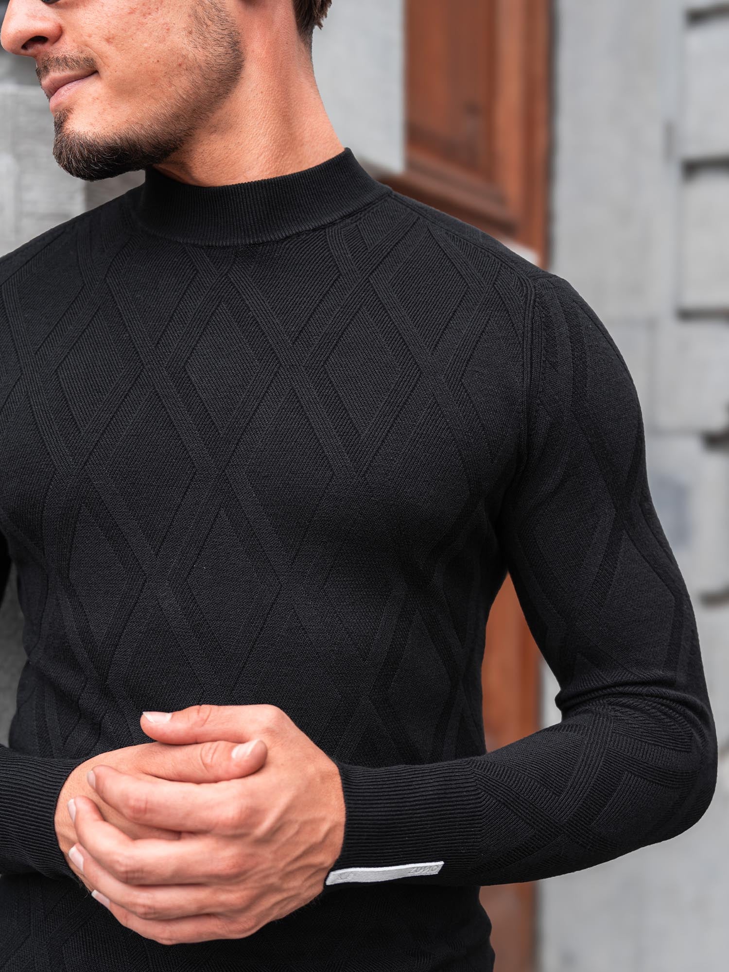 The Hollum-II-Diamond is a refined knit with a subtle upgrade. Designed in the same slim fit as the original, this version features a delicate diamond texture that adds quiet depth to your outfit without screaming for attention. Made from a lightweight viscose-nylon blend, it feels soft on the skin while keeping you warm when it counts. The mock neck adds a clean, modern touch, making this piece perfect for layering or wearing solo on crisp days. Whether you're heading to the office or out for dinner, this is knitwear that works as hard as you do.