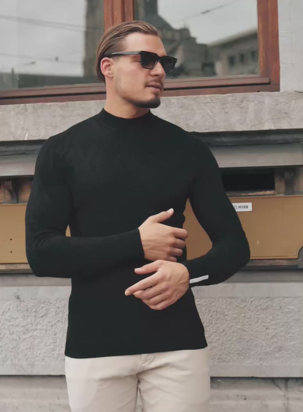 - Mock neck with a refined edge