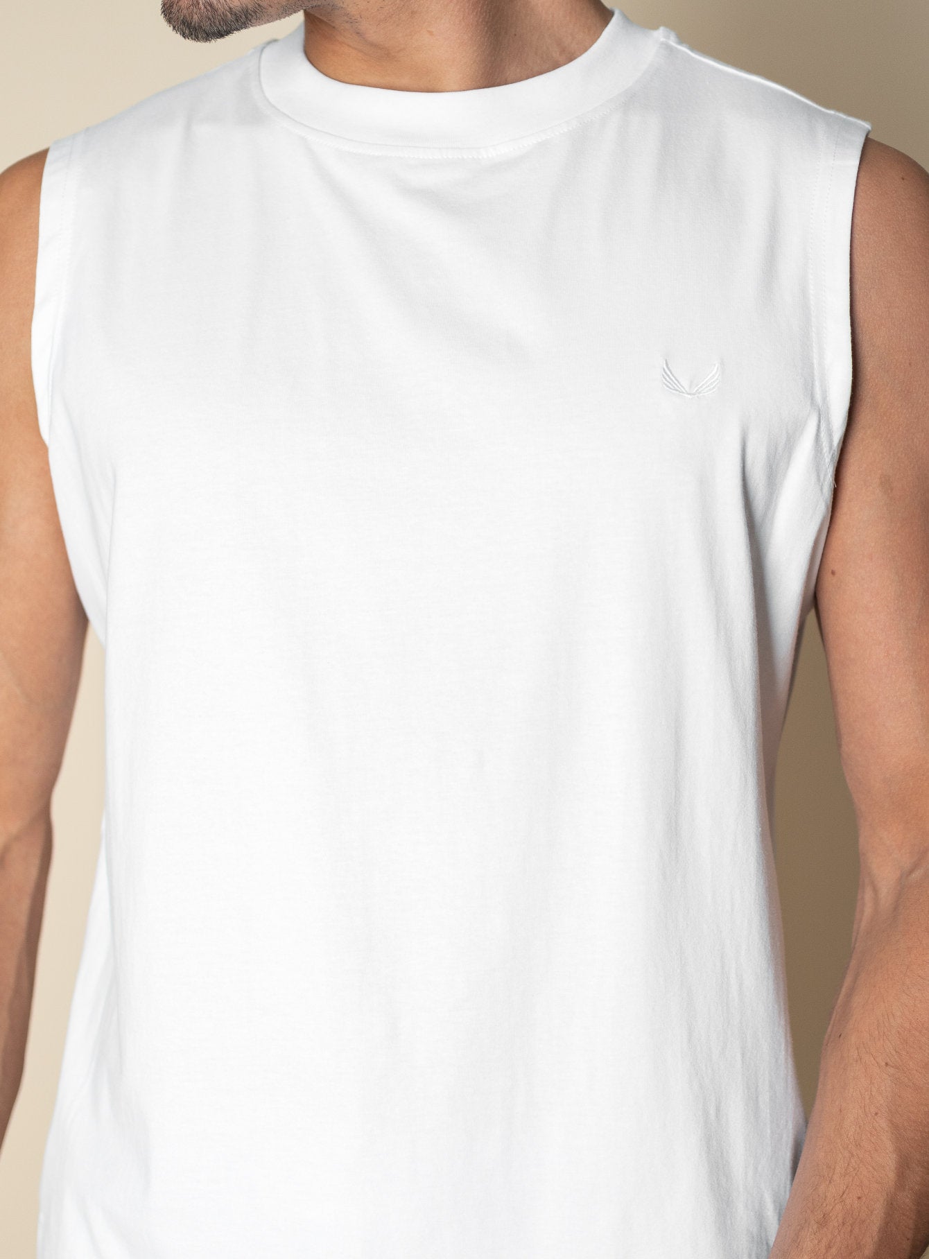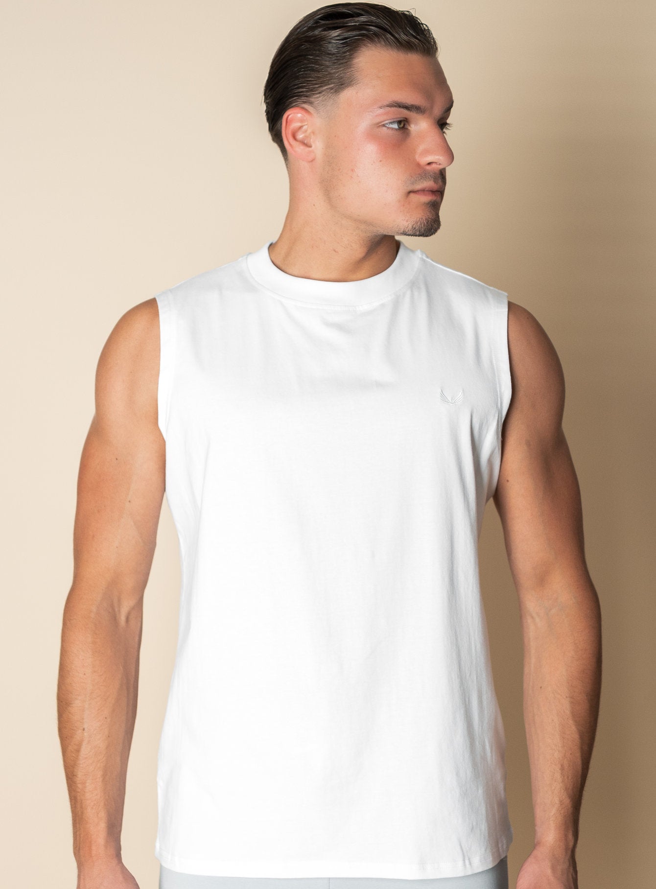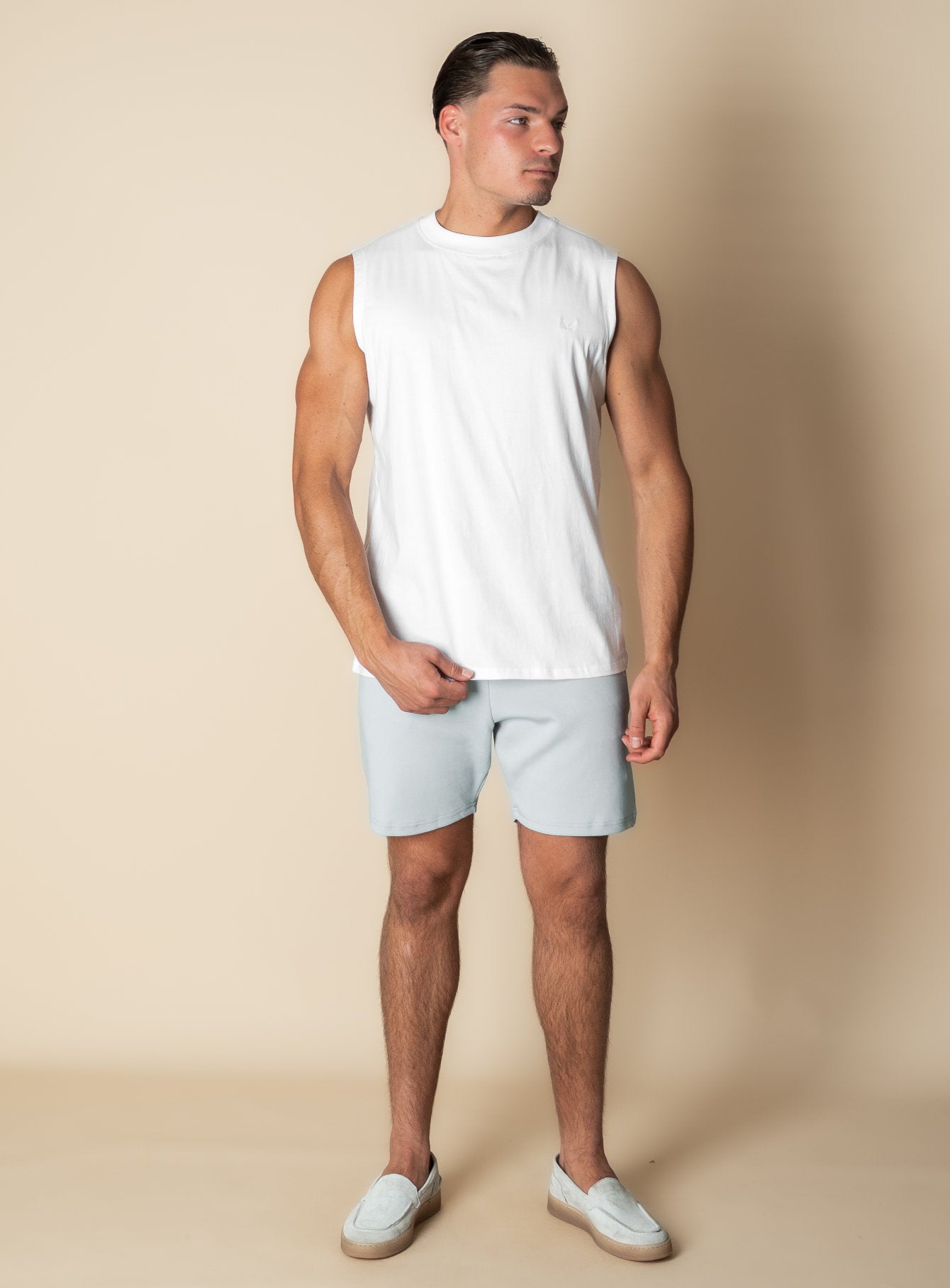 Pair the Sam sleeveless T-shirt with lightweight shorts or loose-fit trousers for a confident, no-fuss summer look.