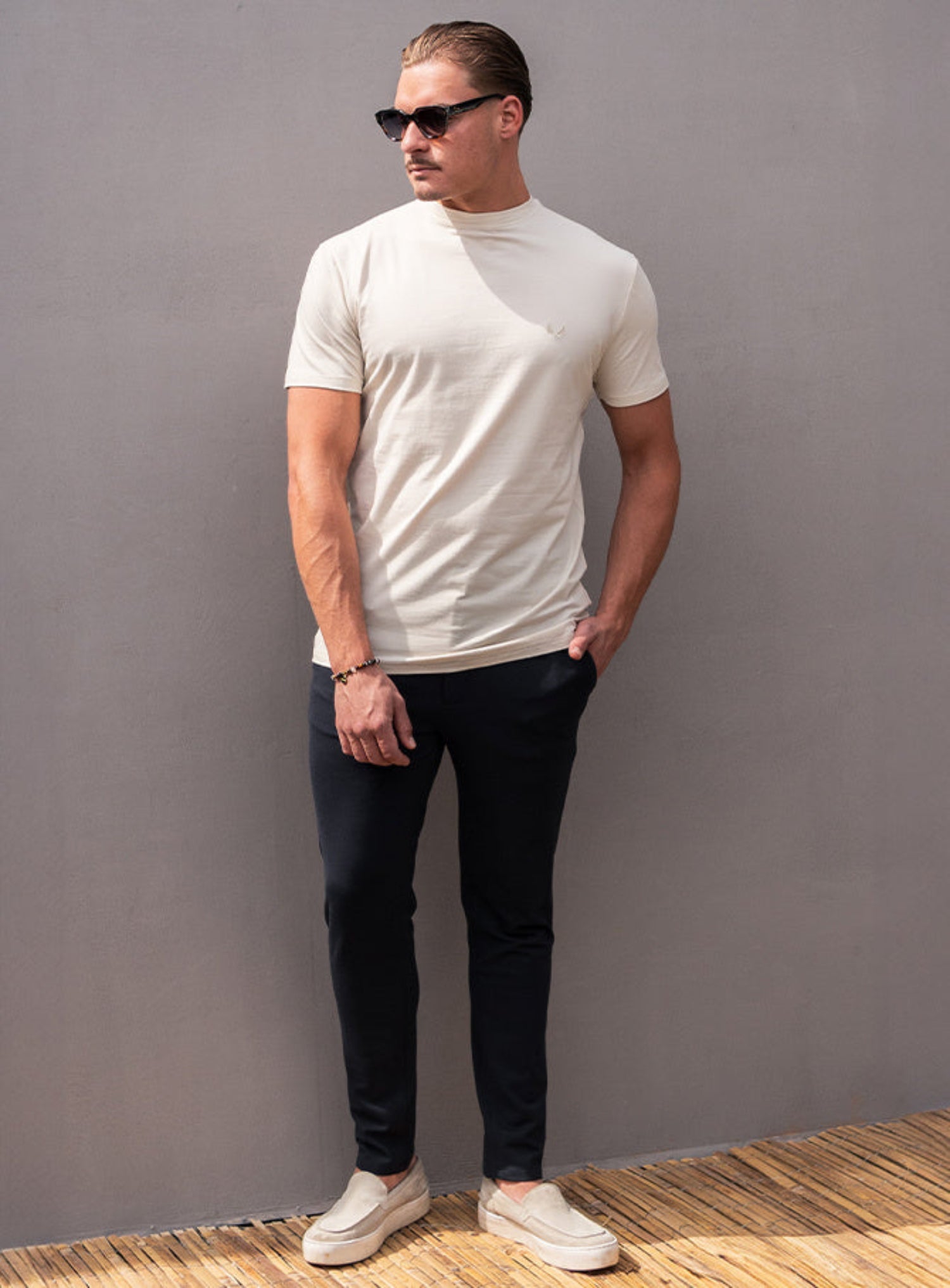 The Wood T-shirt is built for everyday ease, with a bit more room where it counts. Made from a breathable cotton blend, this slim fit tee is designed to move with you, not against you. The sleeves are cut just slightly looser for a more natural feel through the arms, while the body keeps its clean, tailored look. It’s soft, lightweight and quietly confident—exactly what a staple piece should be. Wear it solo or layer it up, this one always works.