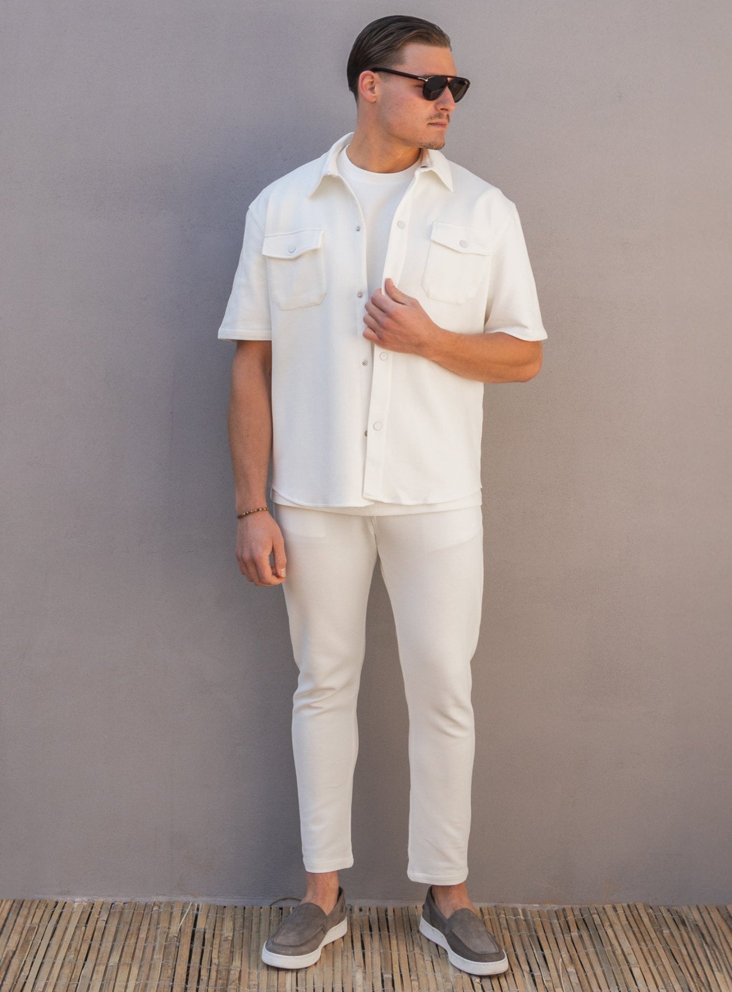 - Heavy piqué cotton blend with a rich, structured feel