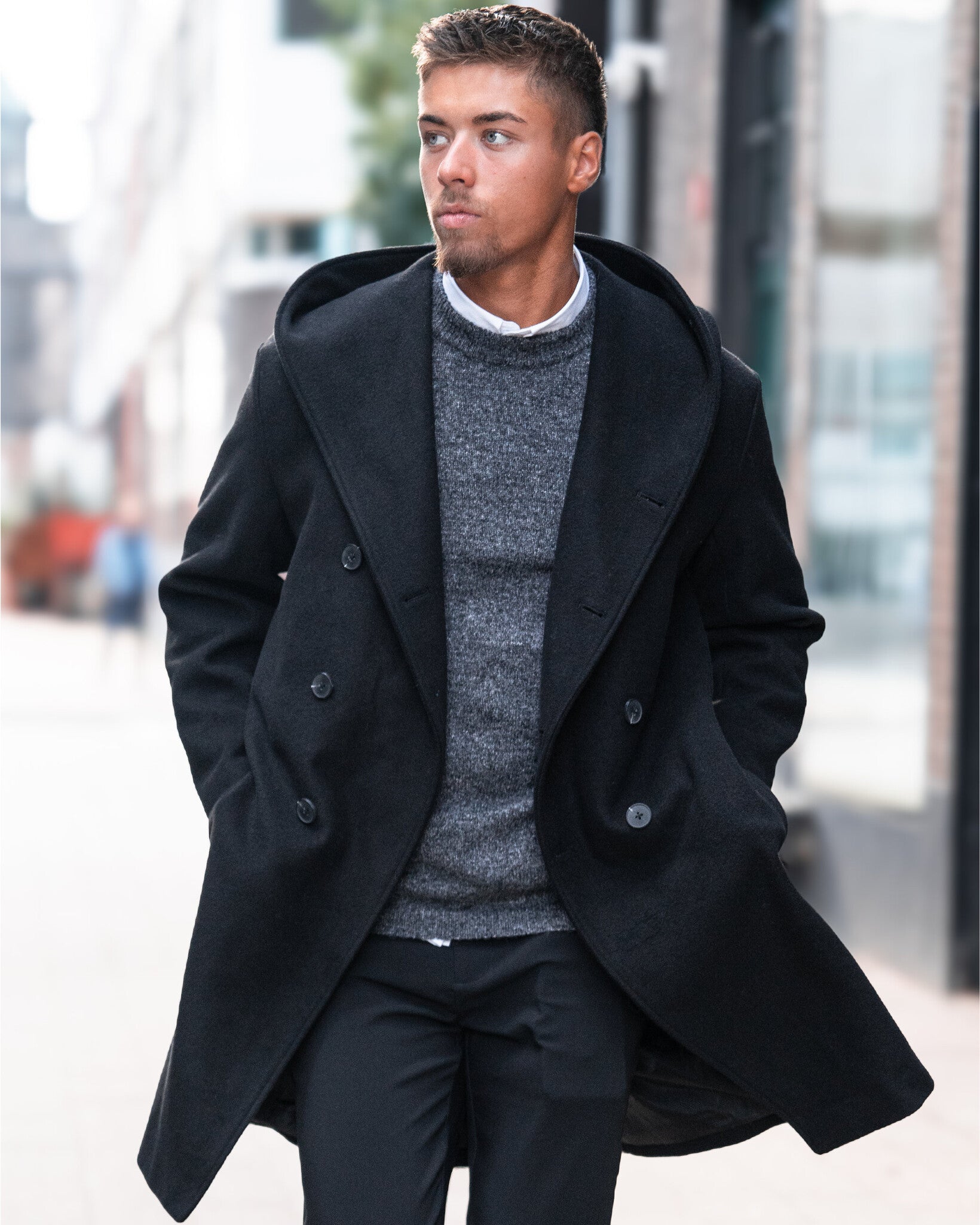 The Bradley coat is for men who want both style and comfort. Made from a premium wool blend that feels soft, is durable, and keeps you warm, even on colder days. The double-breasted button closure and oversized hood give the coat a modern and unique design. The regular fit ensures it sits well without feeling tight. This makes the Bradley a versatile coat, perfect for layering.