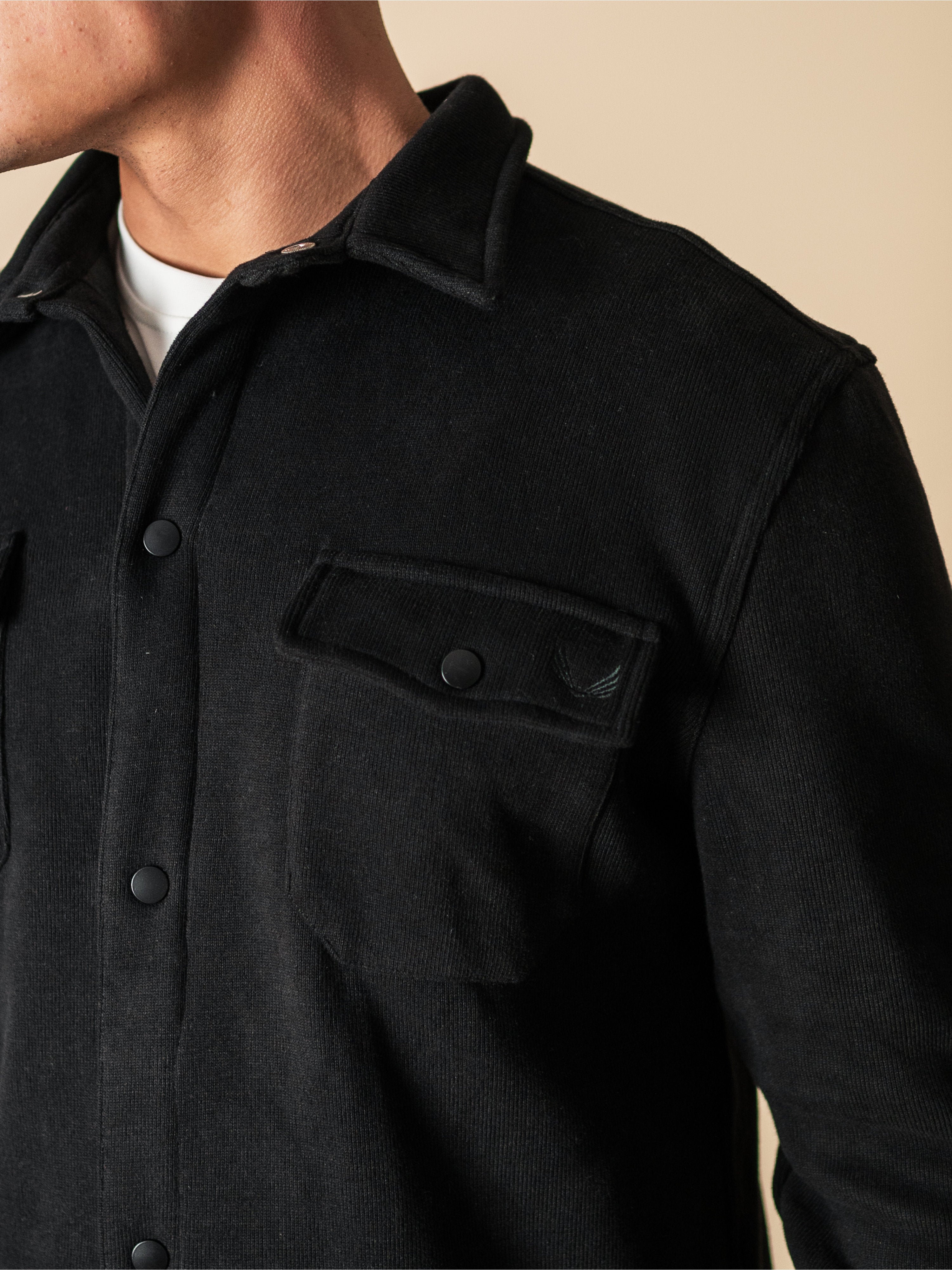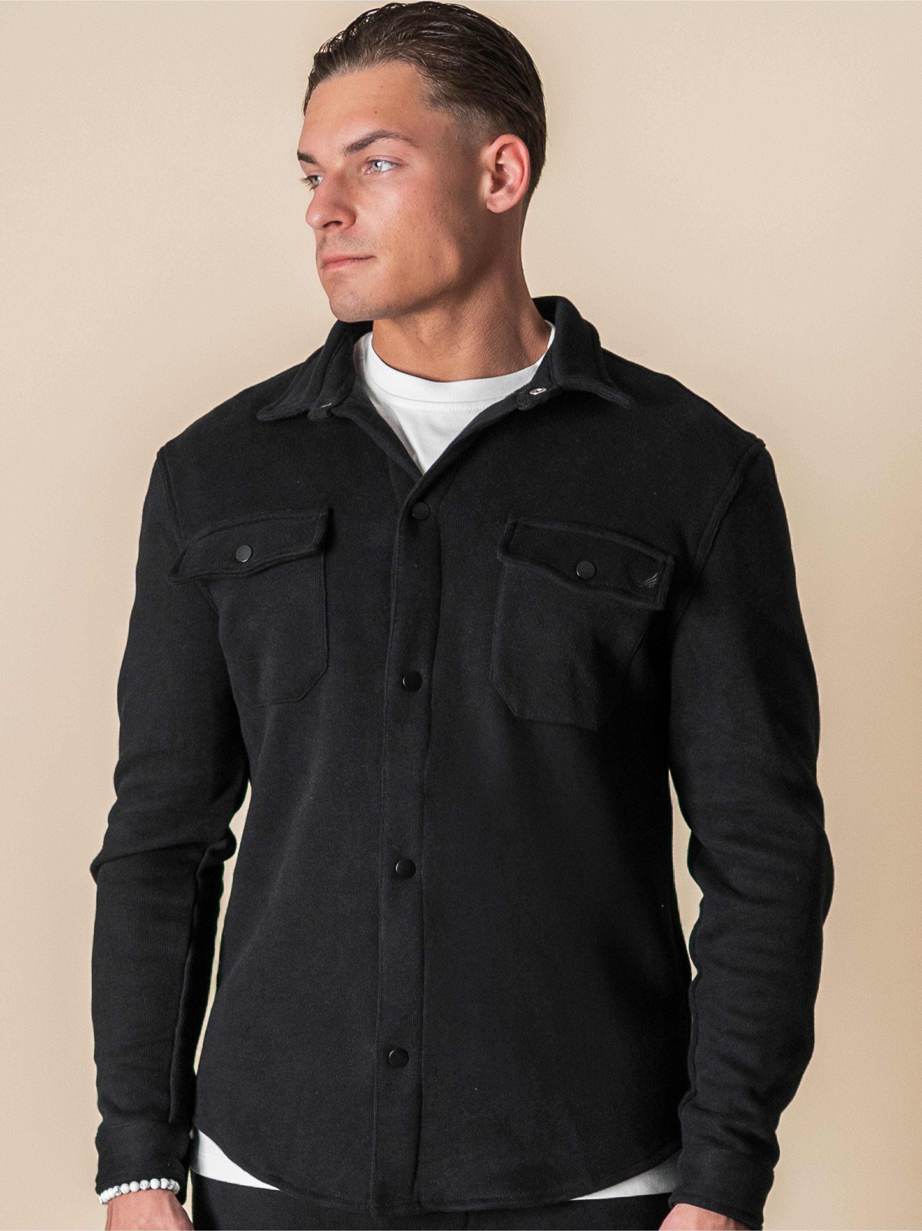 The Larro overshirt is designed to bring structure and warmth into one clean layer. Cut in a regular fit, it combines a sharp outer look with a fleece-lined interior for consistent comfort in colder days. With flap chest pockets and a button-up front, it’s a versatile piece that moves easily between indoor layering and outdoor wear. Minimal in style, strong in presence, and built to keep you ready.