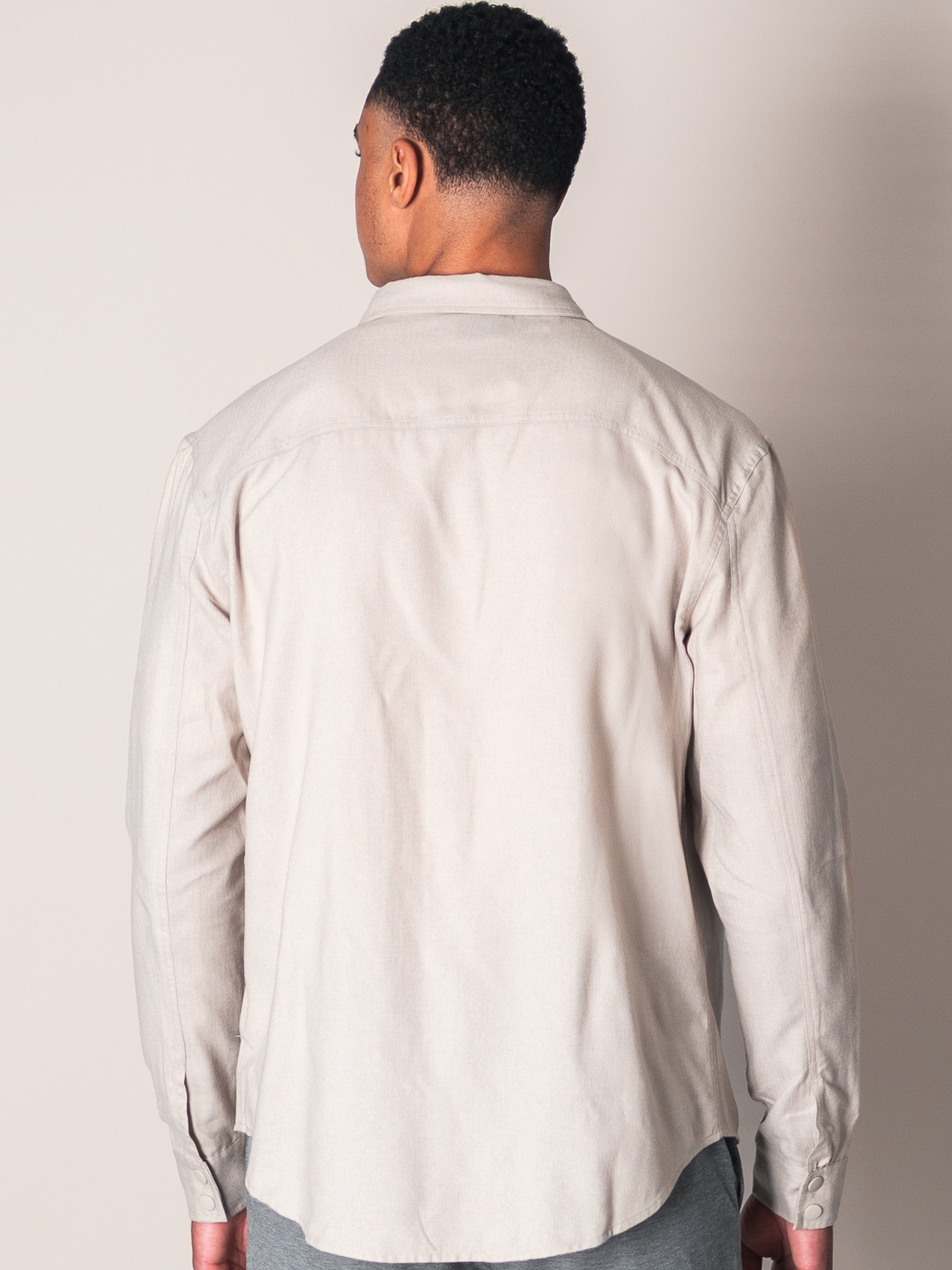 Soft utility with a refined finish. The Danny overshirt is designed in a regular fit with clean chest pockets and minimal detailing. The brushed flannel texture gives it a warm, casual edge without losing sharpness. Easy to layer, soft on the skin and built for everyday wear with a subtle tactile feel.
