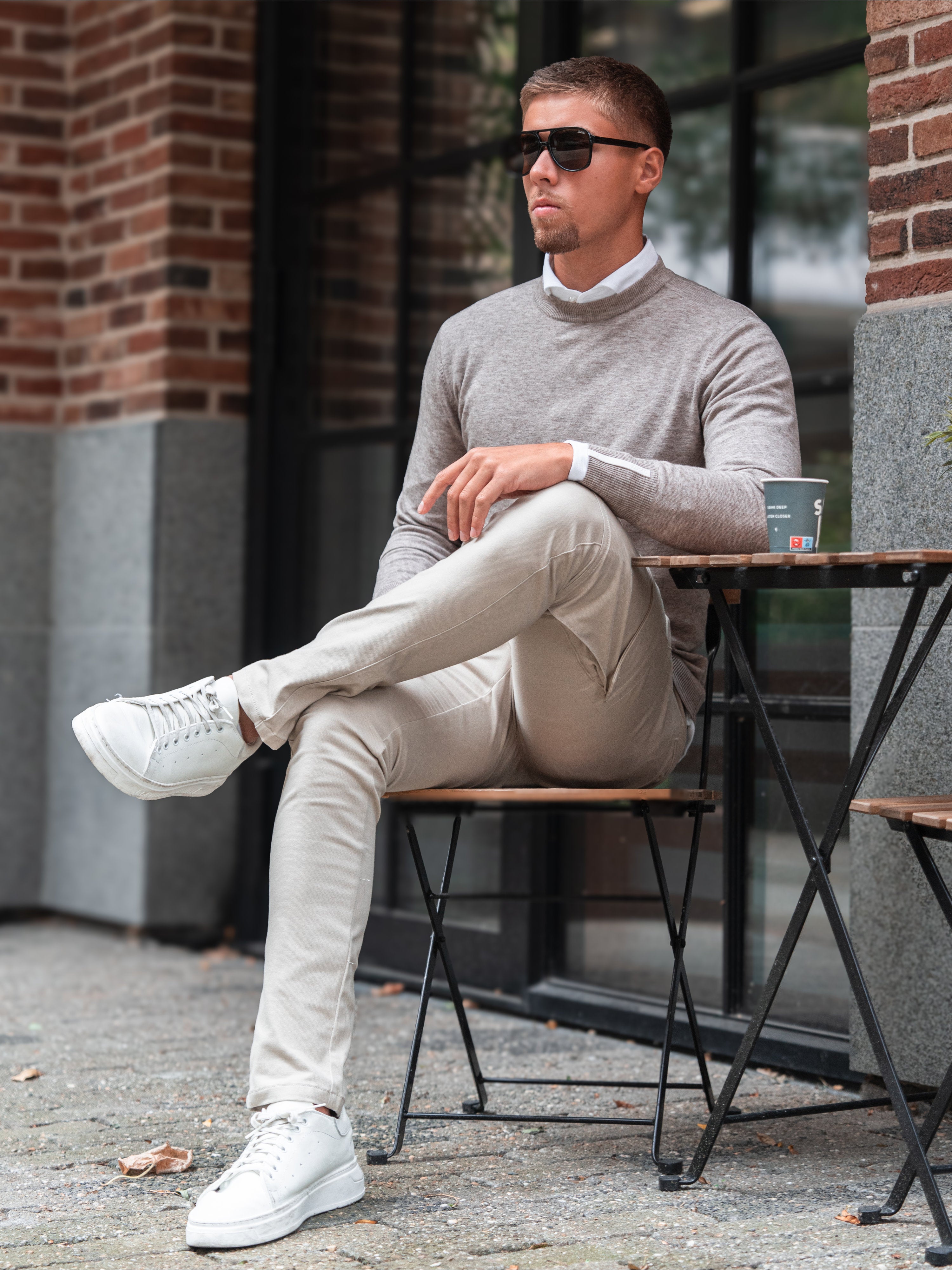 The Leandro pullover keeps things simple but sharp. Designed in a slim fit, it follows the shape of your body and brings out the physique without ever feeling tight. The knit has a warm, cashmere-like feel thanks to a carefully balanced fabric blend that is soft, breathable and slightly brushed for extra comfort. It stretches where needed, holds its shape throughout the day and adds subtle structure with ribbed edges at the collar, cuffs and hem. Whether you're dressing for the office, a night out or a laidback day that still calls for presence. This one does the job without saying a word.