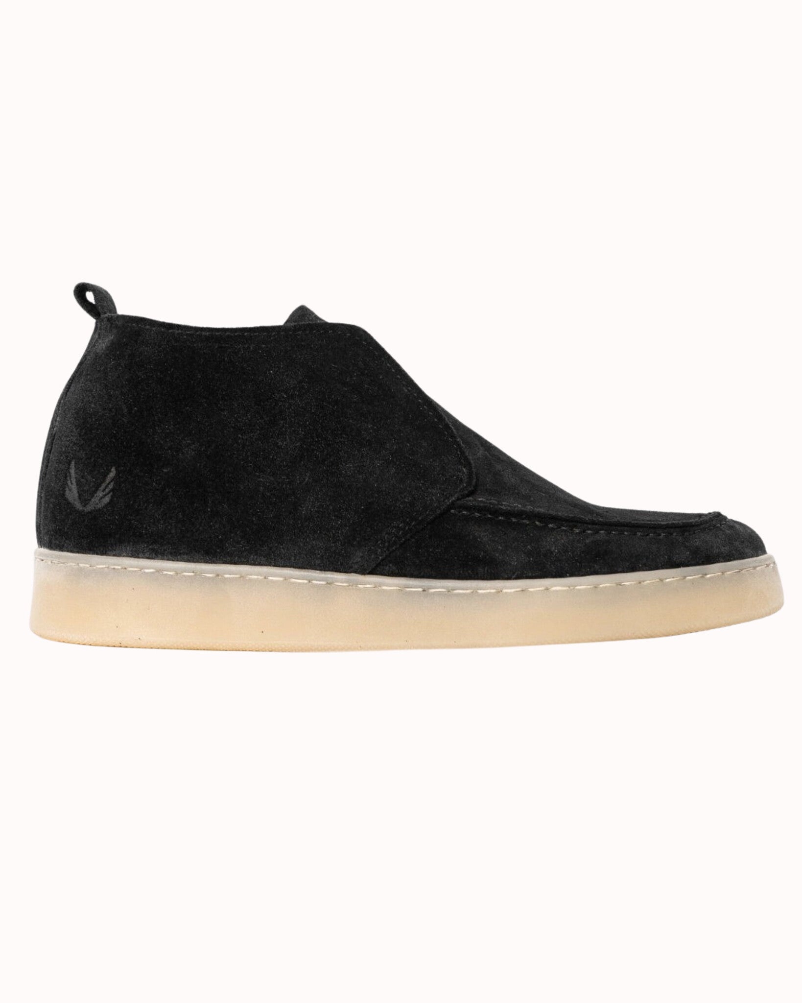 Elevate your style with the Maxim boot. Handcrafted in Italy, this suede boot exudes elegance with stitched seams and a discreet logo on the ankle. It features a gum rubber sole and a blind Velcro closure for easy wear. Combine these boots with jeans for a sophisticated casual look, or pair them with slim-fit pantsfor a bolder statement. Step up your game with Italian luxury at your feet.