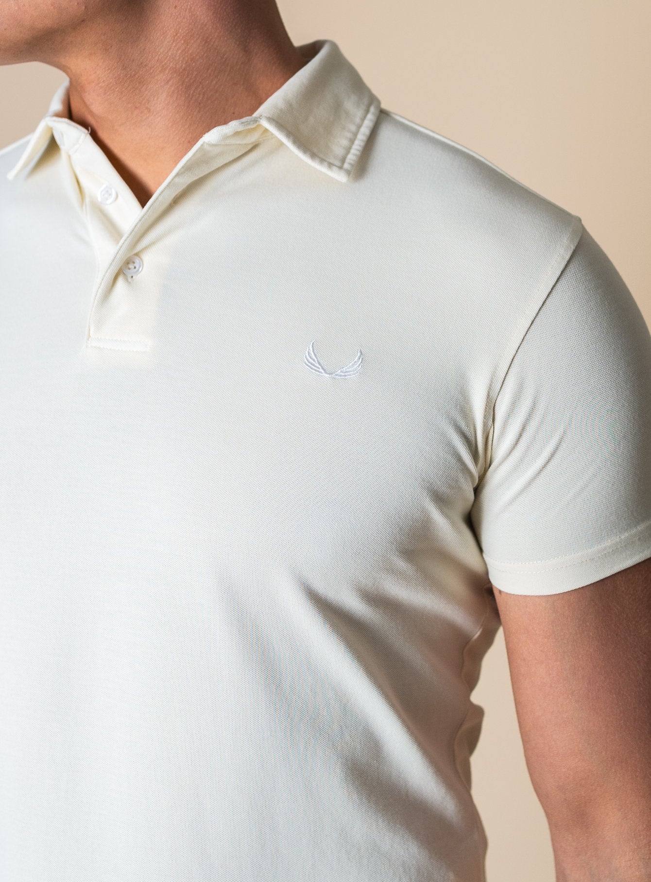 - Classic polo collar with button closure