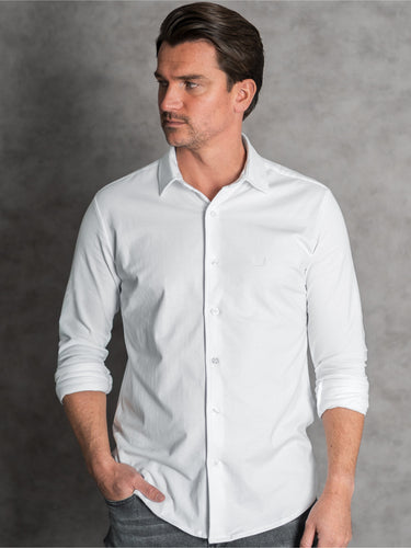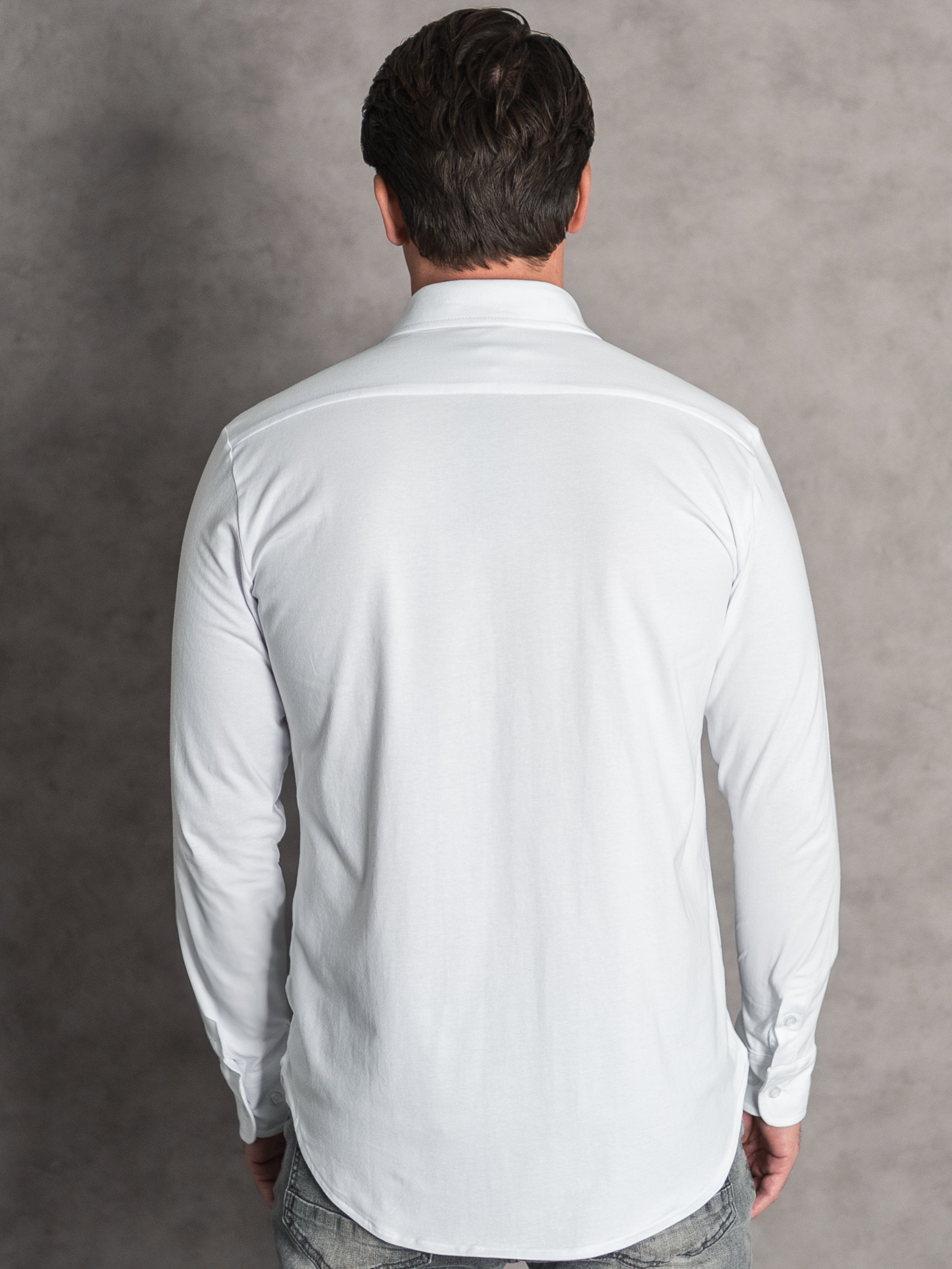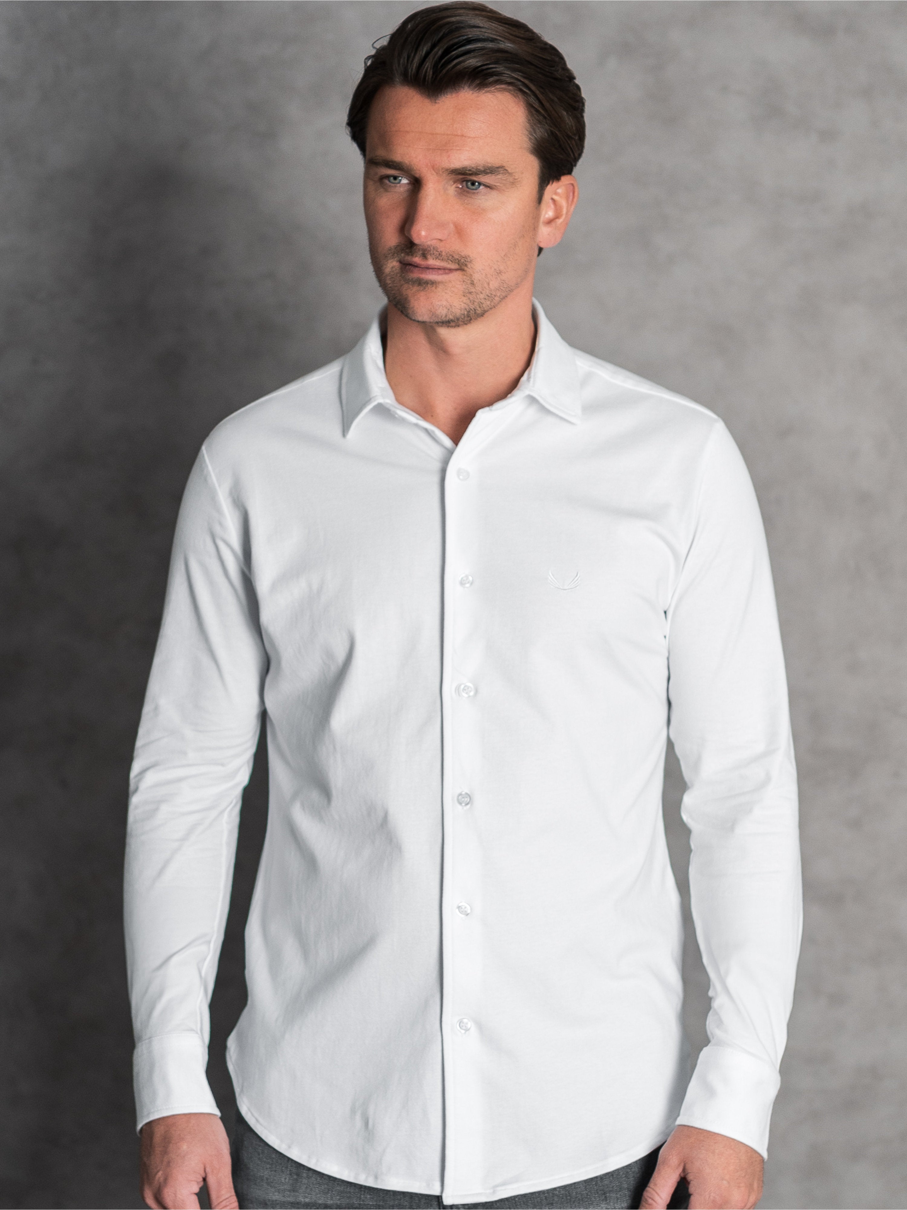 The Soren shirt brings the comfort of a T-shirt into a sharper silhouette. Designed in a slim fit, it follows the shape of your body while still allowing you to move freely. The melange jersey fabric has a soft, flexible feel with four way stretch, making it ideal for long days or active settings. Clean detailing and a tailored look keep it refined without losing ease. It is a casual shirt that looks dressed without ever feeling stiff.