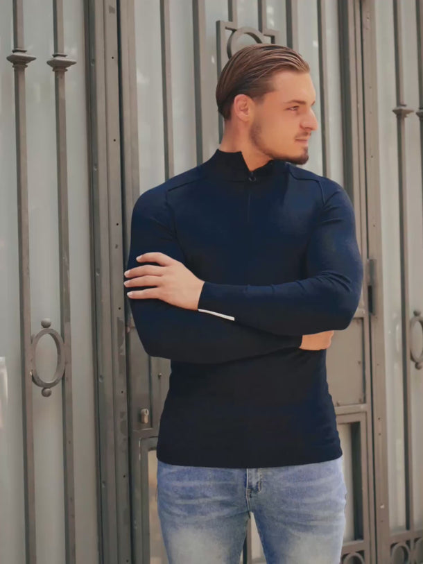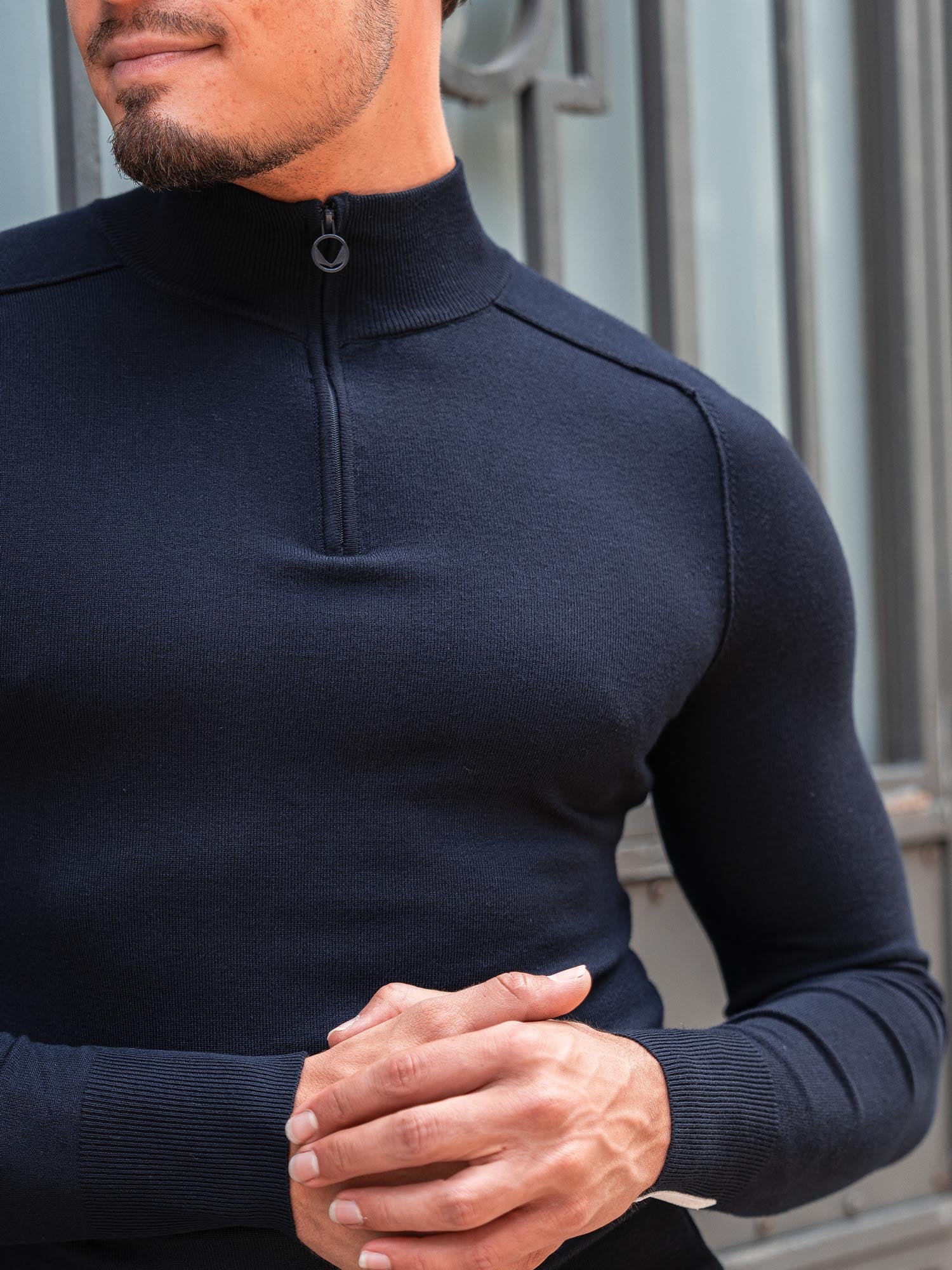 The Spanzip pullover combines refined structure with effortless comfort. Designed in a slim fit and made from a soft stretch blend, it moves easily while keeping its shape throughout the day. The high neckline with half-zip closure gives it a clean, modern edge, while the subtle logo detail on the zipper adds a touch of quiet branding. It’s minimal, versatile and easy to dress up without feeling too formal.