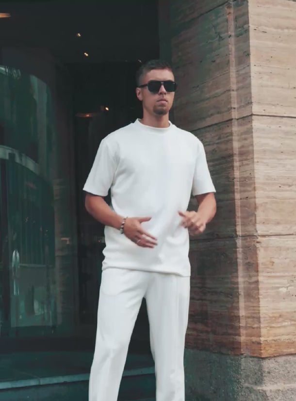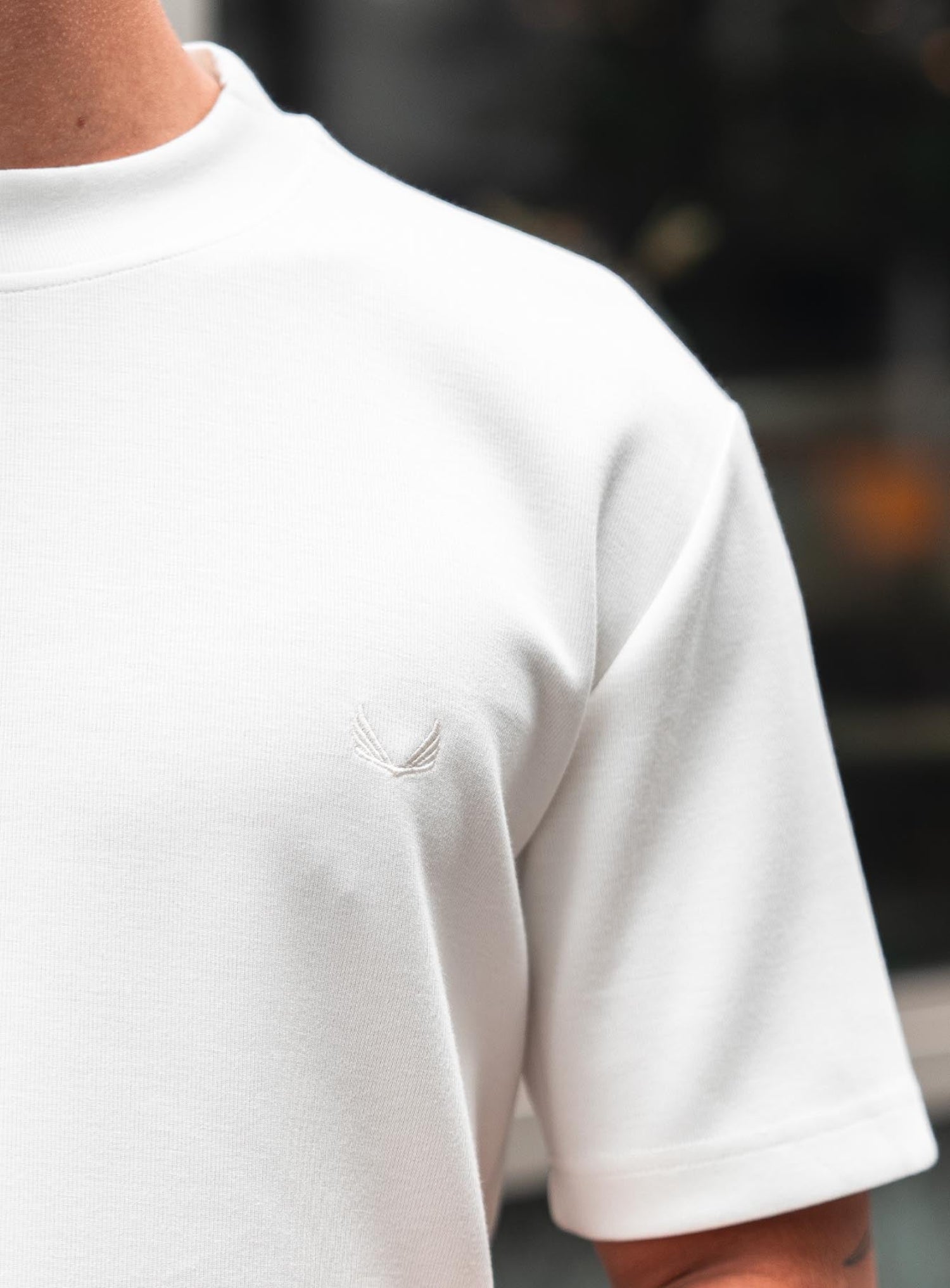 A heavyweight T-shirt that feels substantial without being stiff. The Titan-300 makes simplicity feel strong.